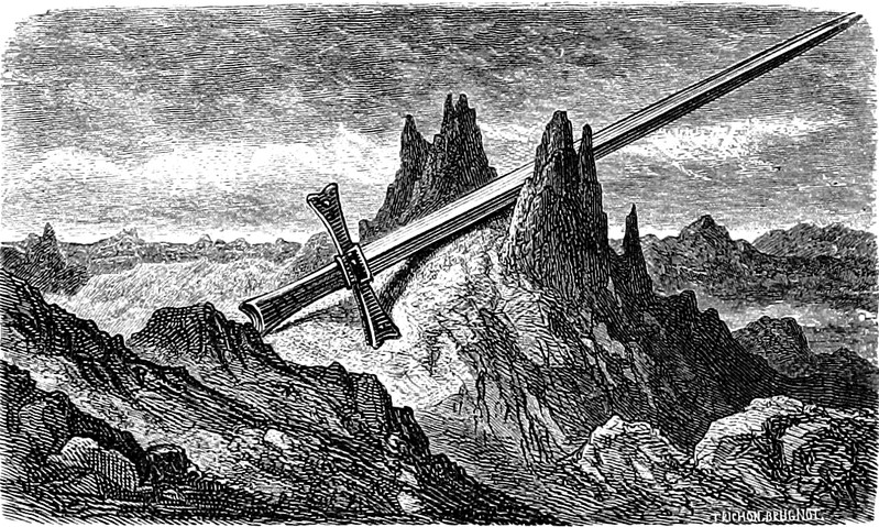 #vintage illustration #sword #mountains #illustration #pyrenees