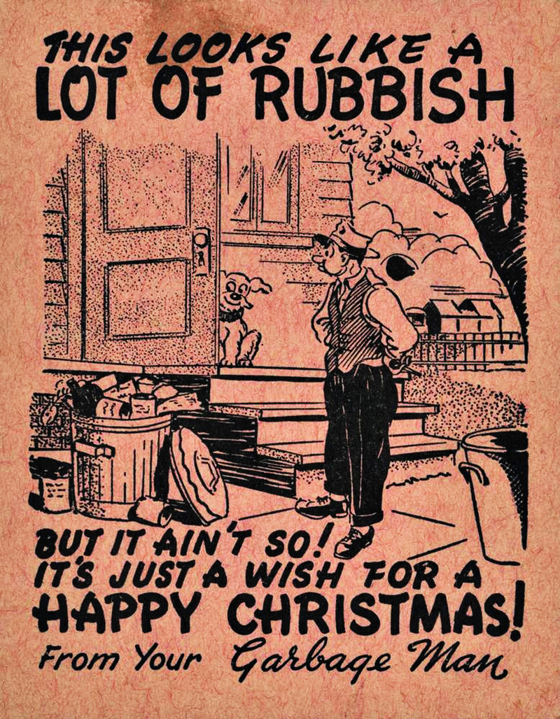 Here's how an outhouse overlaps with Christmas wishes. The talking outhouse is "obscured by vines and creepers" by day and night and confesses to taking the secrets you have hidden in the shadows with him to the "good sewers." His "one and only spasm" of the year is accompanied by lucky horseshoes. From Queensland, 1938. This will also be of interest:The Collected Lost Meanings of Christmas.