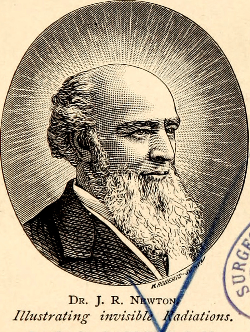 Here's an illustrator of invisible radiations from The Health Guide by Edwin D. Babbit, 1874.