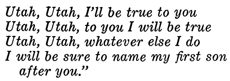 Here's a precursor to the Coen brothers' Raising Arizona, about a baby named after a state; the final line of the film concerns Utah: "If not Arizona, then a land not too far away, where all parents are strong and wise and capable and all children are happy and beloved. I don't know. Maybe it was Utah." From Purple Parrot, 1923.