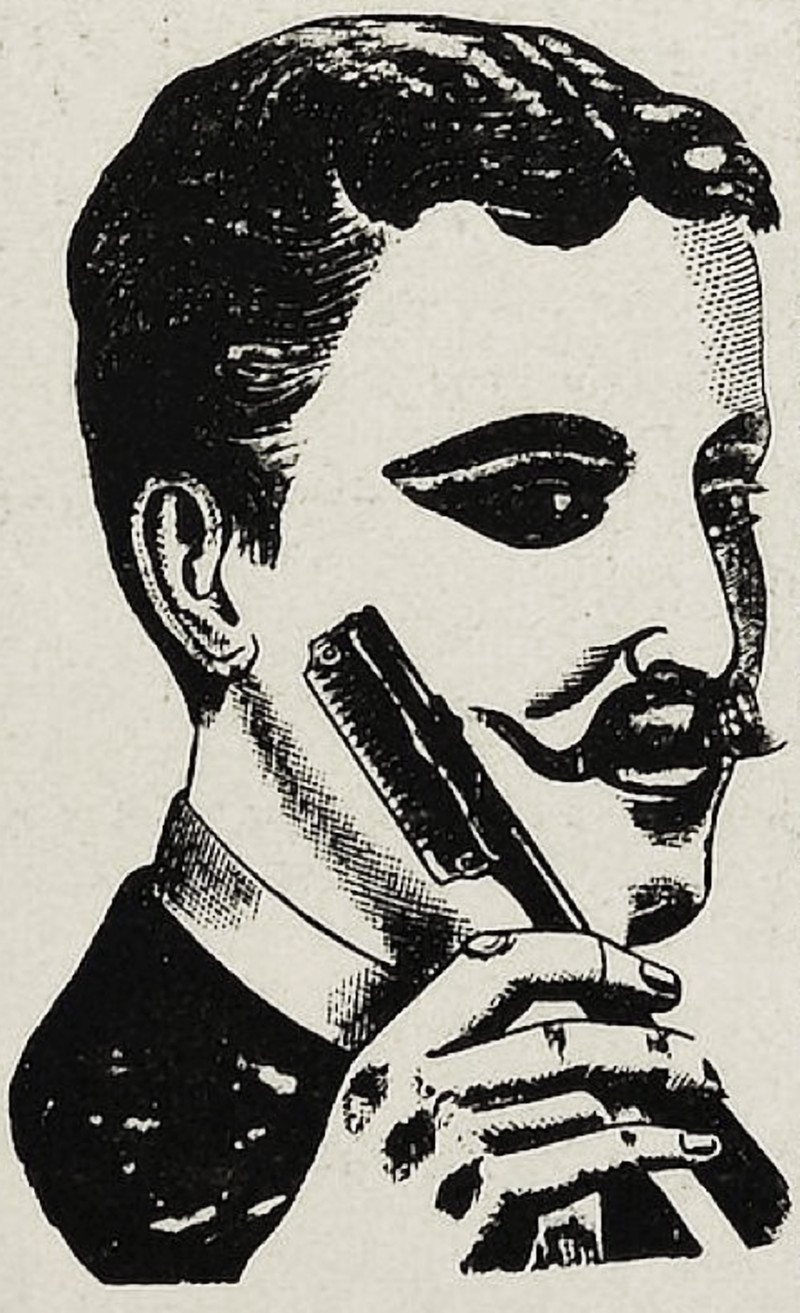 #vintage illustration #vintage ad #dandy #mustache #vintage man #man #razor #black eye #ad