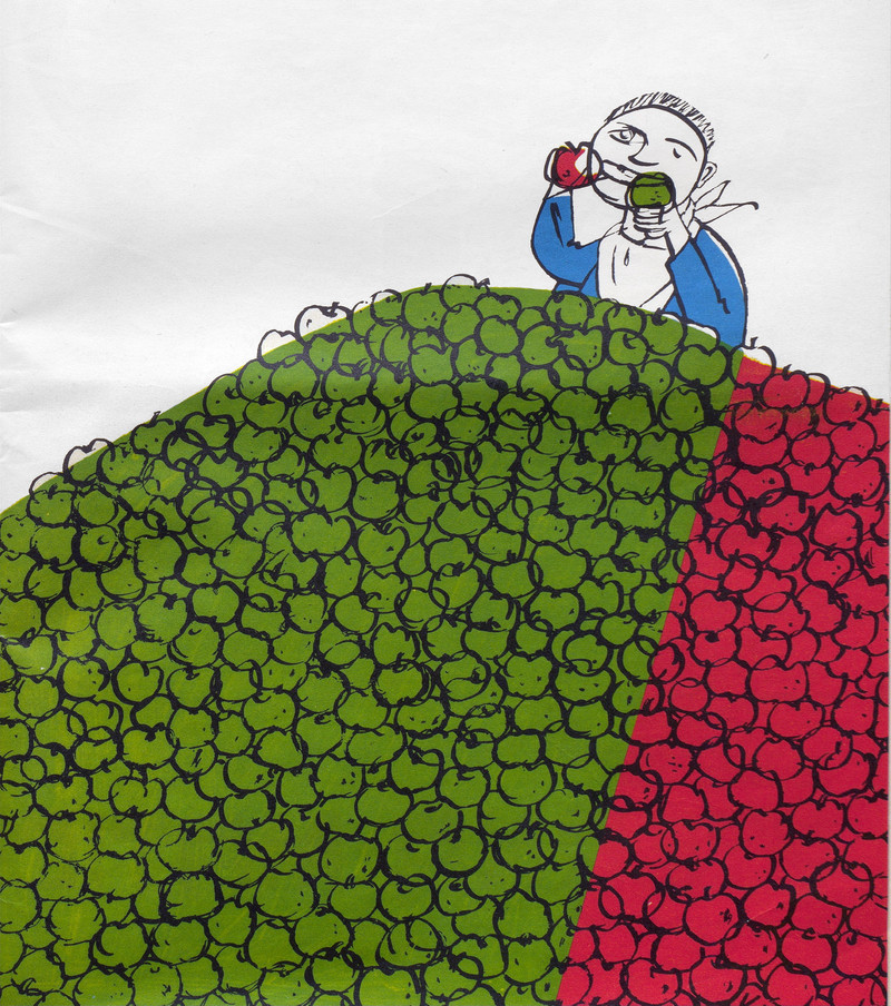 Folks with red-green color blindness may rest assured that they aren't missing much in this colorfully insensitive illustration. From Nebelspalter, 1958.