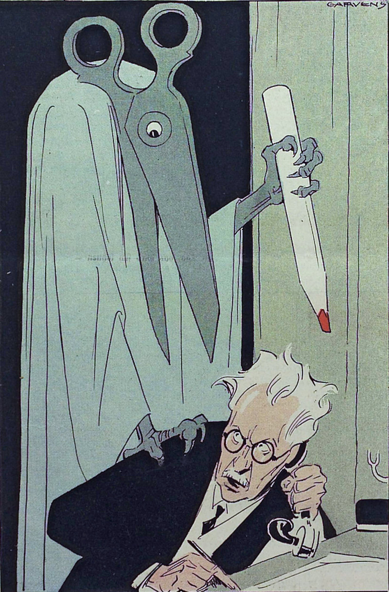 #vintage illustration #death #grim reaper #anthropomorphism #scissors #1930s #illustration #red pencil