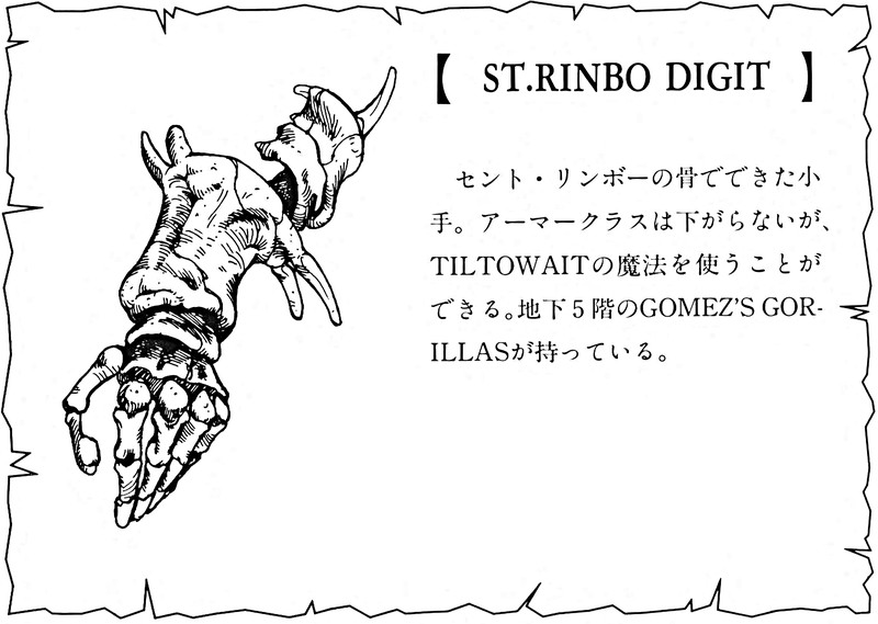 Sometimes we don't realize we need a thing until we seriously do need it. If a digit of St. Rinbo happens to be that thing you need today, here it is. From Wizardry IV: The Return of Werdna Handbook.