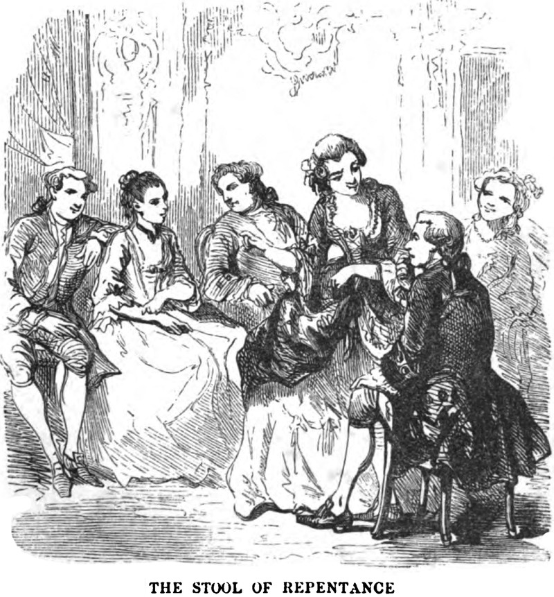 "The stool of repentance."  From Round Games for All Parties, 1854.