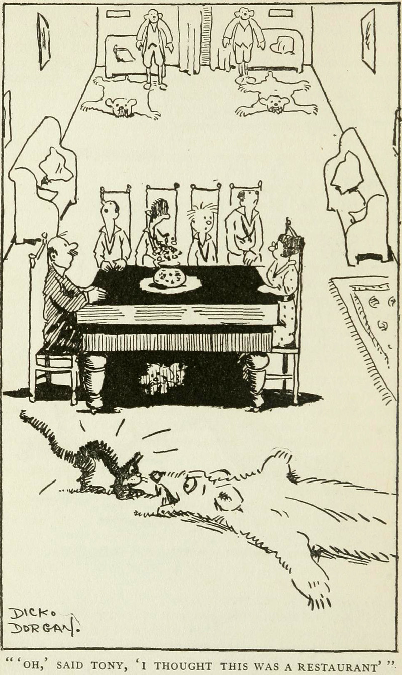 "Oh, I thought this was a restaurant."  From Biltmore Oswald by J. Thorne Smith and illustrated by Richard Dorgan, 1918.