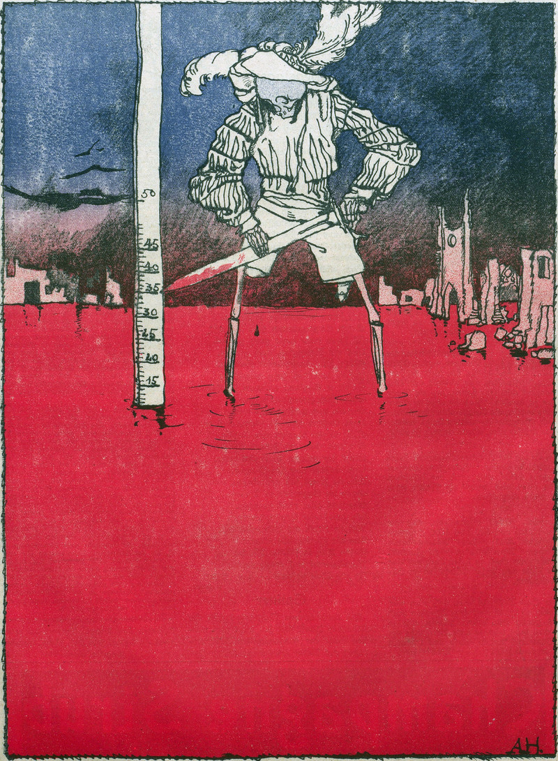 #vintage illustration #political cartoon #death #skeleton #war #war dead #river of blood