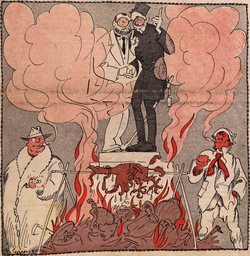 #vintage illustration #political cartoon #illustration #roasted on a spit