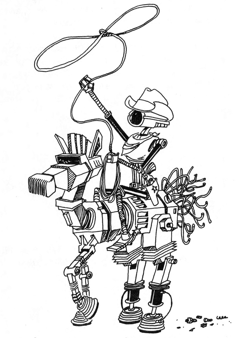 #vintage illustration #robot #lasso #robot horse #robot cowboy