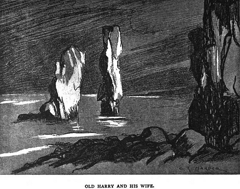 "Old Harry and his wife."  From The Dorset Coast by Charles George Harper, 1905.