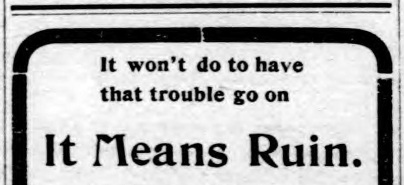 "It won't do to have that trouble go on.  It means ruin."  From the Duluth Herald, 1905.