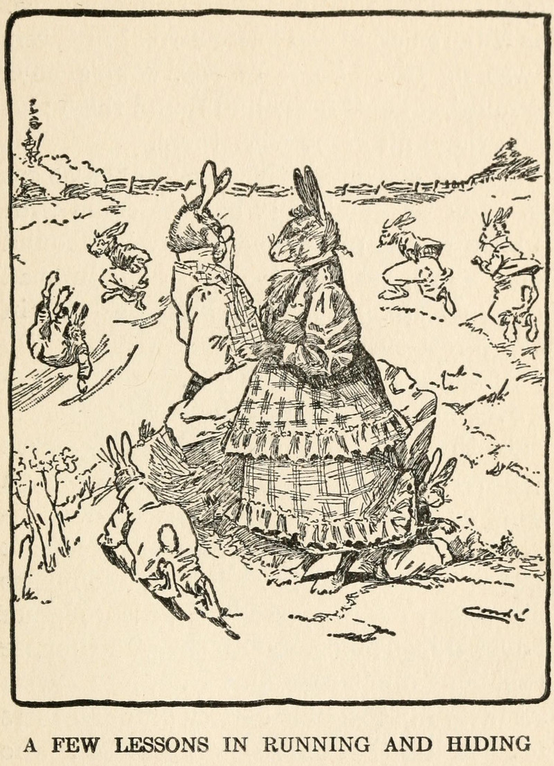 We could use a few lessons in running and hiding.  From Making Up with Mr. Dog by Albert Bigelow Paine and illustrated by J. M. Paine, 1901.