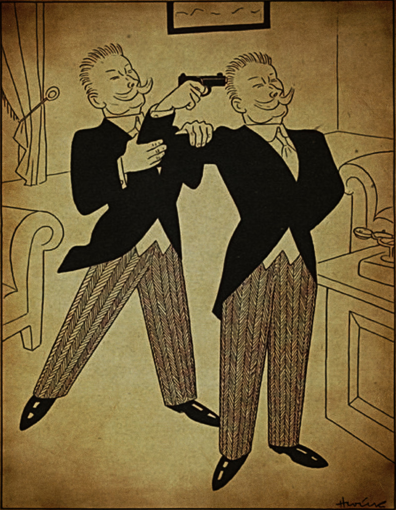 #vintage illustration #twins #mustache #illustration #doppelgänger #russian roulette