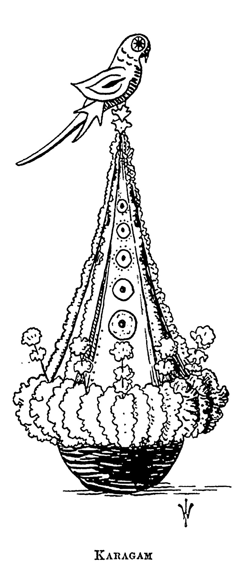 #religion #vintage illustration #bird #hindu #illustration #1910s #karagam #water vessel #sacred vessel #sacred offering #tamil