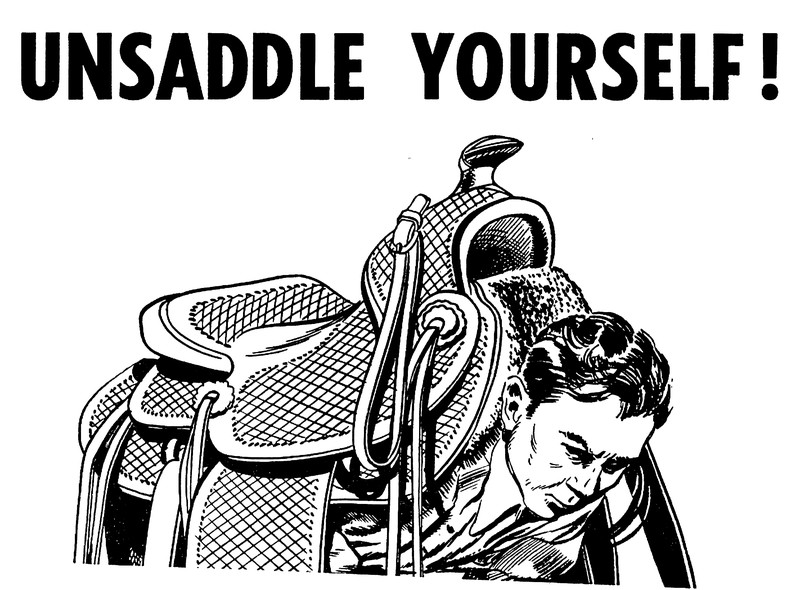#vintage illustration #vintage ad #1940s #advice #saddle #illustration #ad