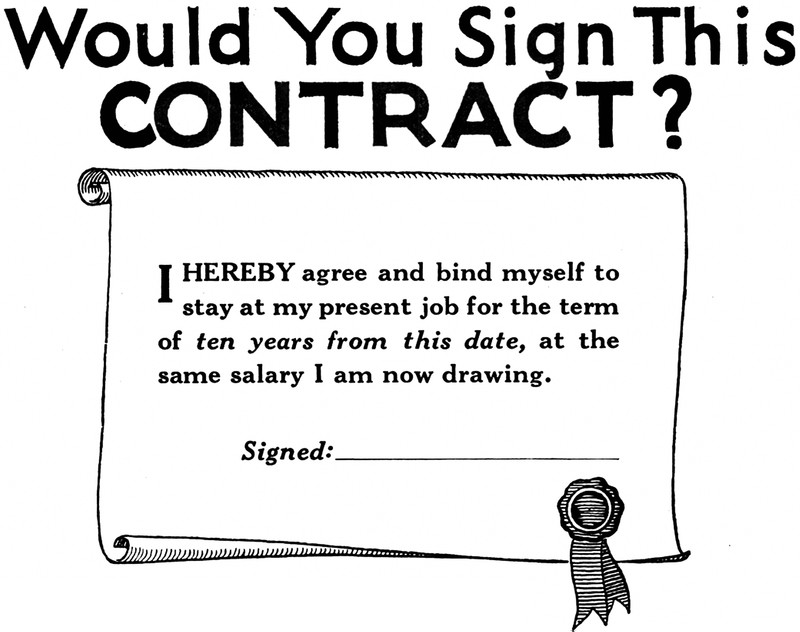 Our answer to this question is "Yes," because our income has actually gone down over the last ten years, so keeping the same salary for a decade would be preferable. From Popular Mechanics, 1927.