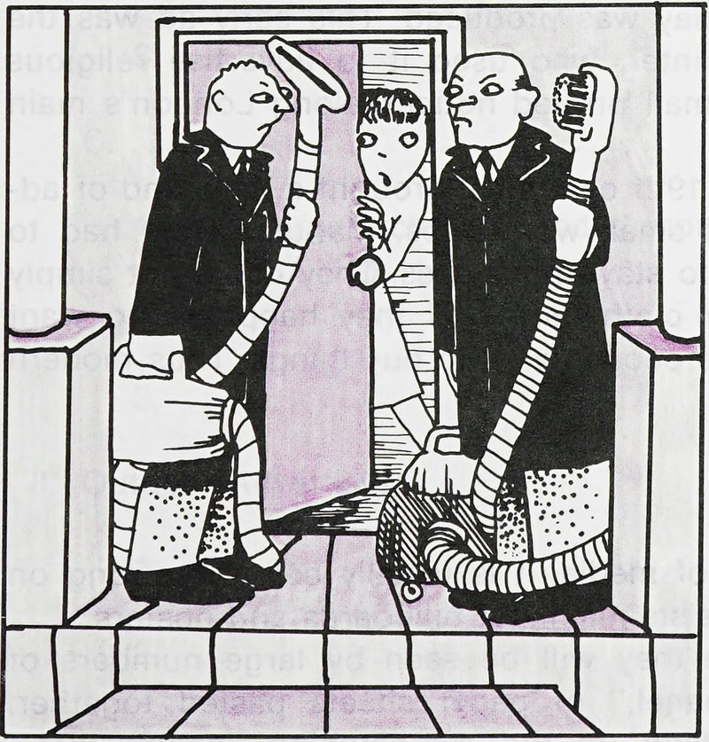 #vintage illustration #1970s #illustration #vacuum #salesman