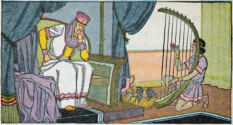 #vintage illustration #king #harp #biblical #1900s #musician #illustration #david #saul