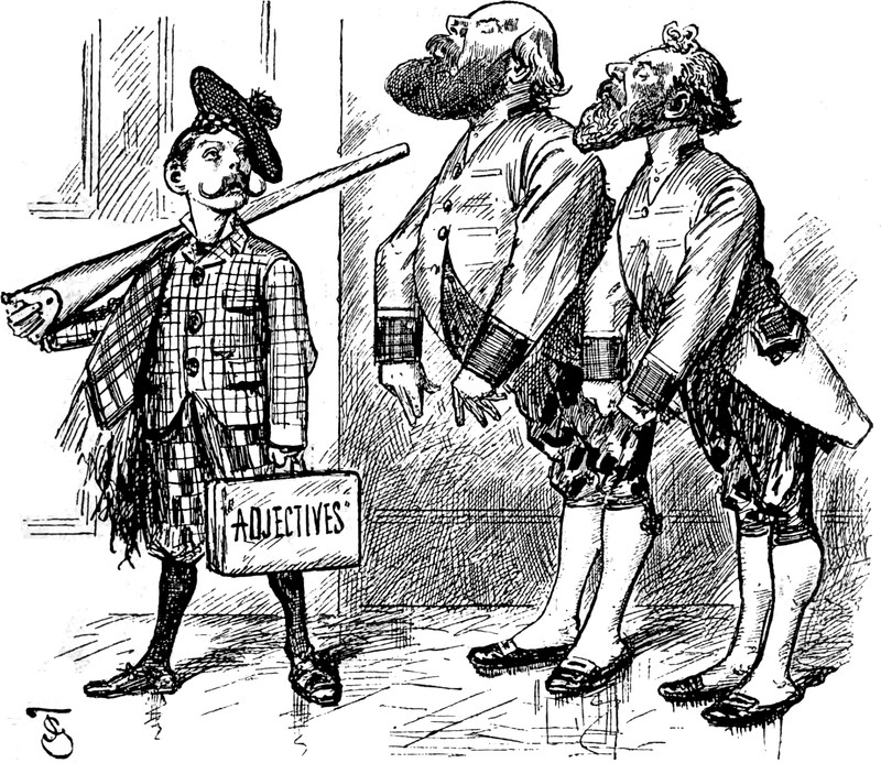 He has packed up his adjectives.  From Fun magazine, 1885.  Here's a list of Scots adjectives.
