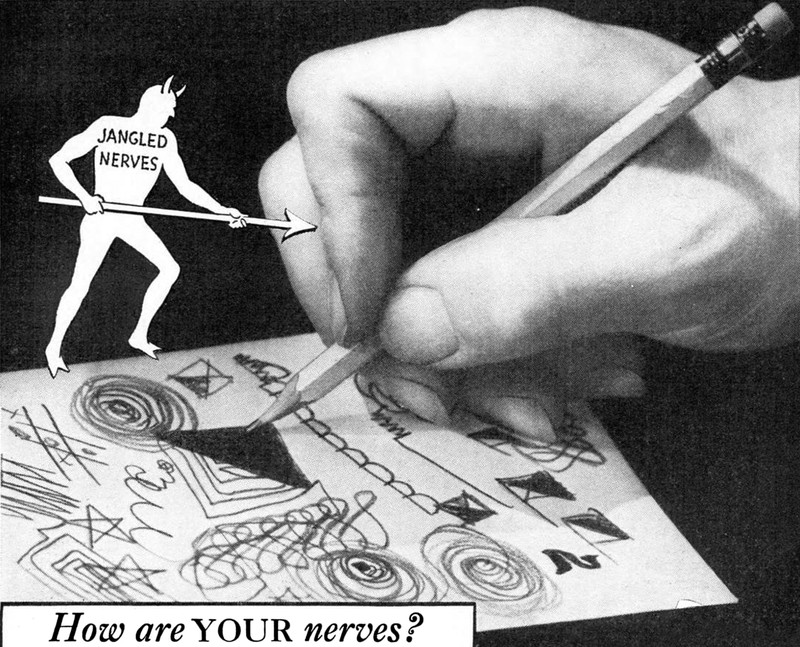 #vintage ad #devil #nerves #doodle #1930s #scribble #ad