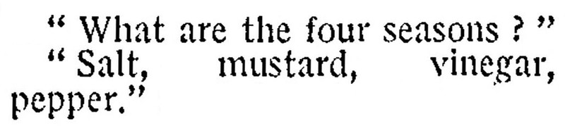 The four seasons are salt, mustard, vinegar, and pepper.  From The Children's Newspaper, 1930.