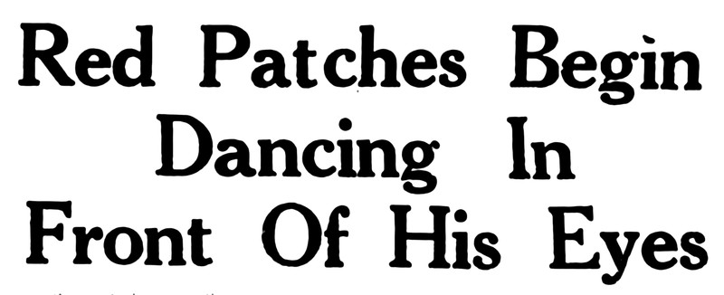 "Red patches begin dancing in front of his eyes."  From the Bombay Sunday Chronicle, 1957.