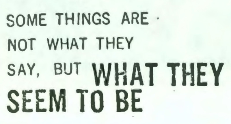 "Some things are not what they say, but what they seem to be."  From Davinci magazine, 1975.
