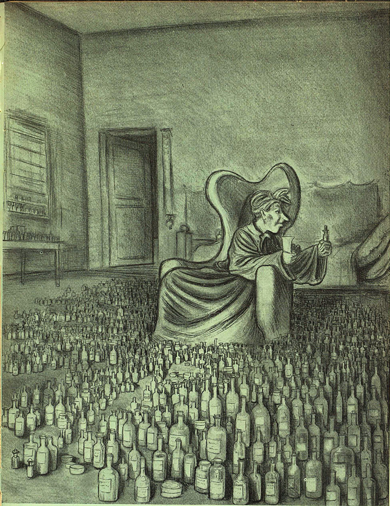 #vintage illustration #addiction #medicine #illustration #self medication #home remedy #medicine bottles