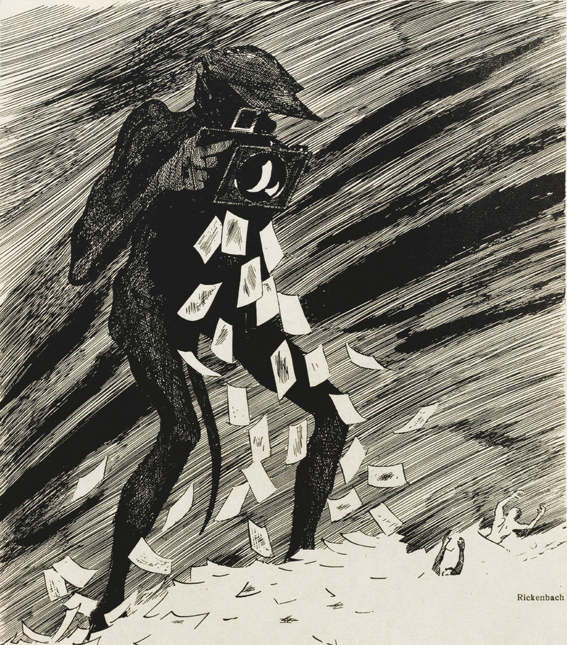 The invention of the insta-print camera (with self-developing film) is credited to Edwin Land in 1948. But you knew we'd find a precursor, and here's one from 1932. From Nebelspalter, 1932.