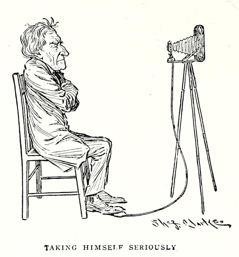 They say modern selfie-takers are narcissistic psychopaths, but our forebears took selfies of themselves dating their doppelgängers. How far we have devolved. From The Idler, 1894.