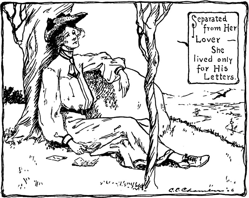 "Separated from her lover.  She lived only for his letters."  From Wayside Tales, 1906.