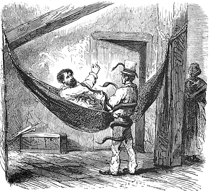 #vintage illustration #serpents #hammock #snakes #illustration #serpent handler
