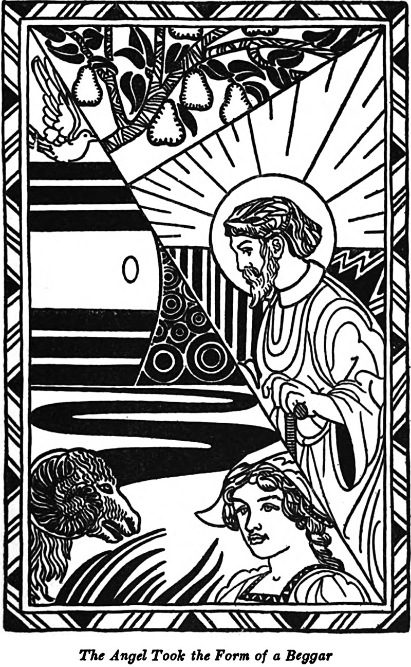 "The angel took the form of a beggar."  From The Laughing Prince by Parker Fillmore and illustrated by Jay Van Everen, 1921.