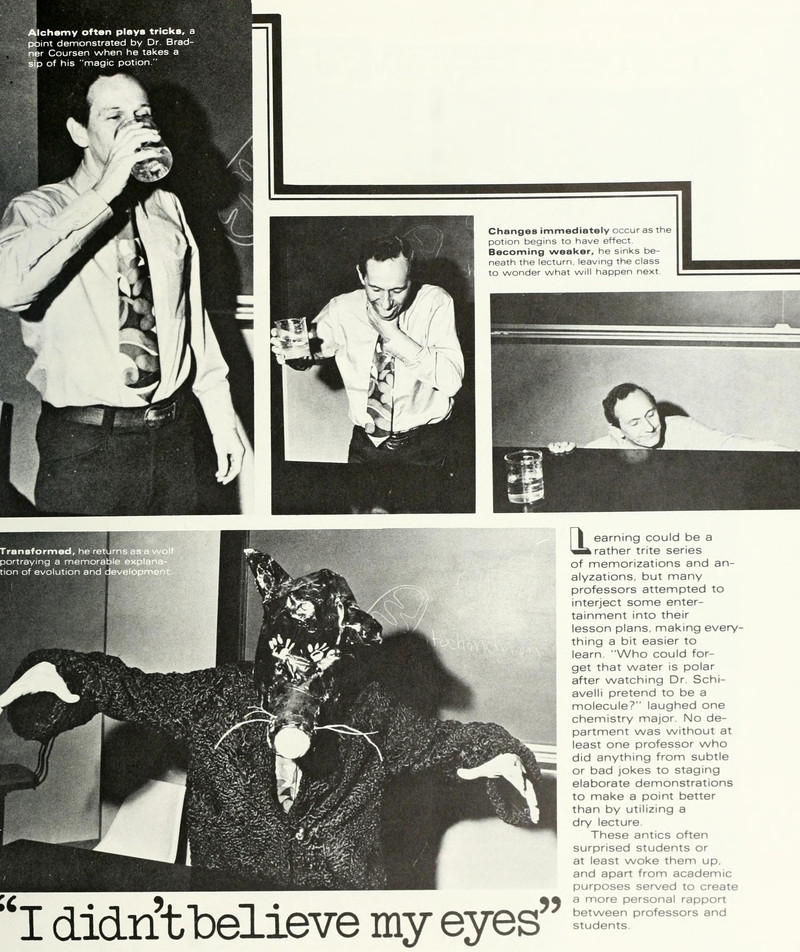 Exactly like our own higher education experience -- a professor uses an alchemical elixir to shape-shift.  From William and Mary's 1975 yearbook.