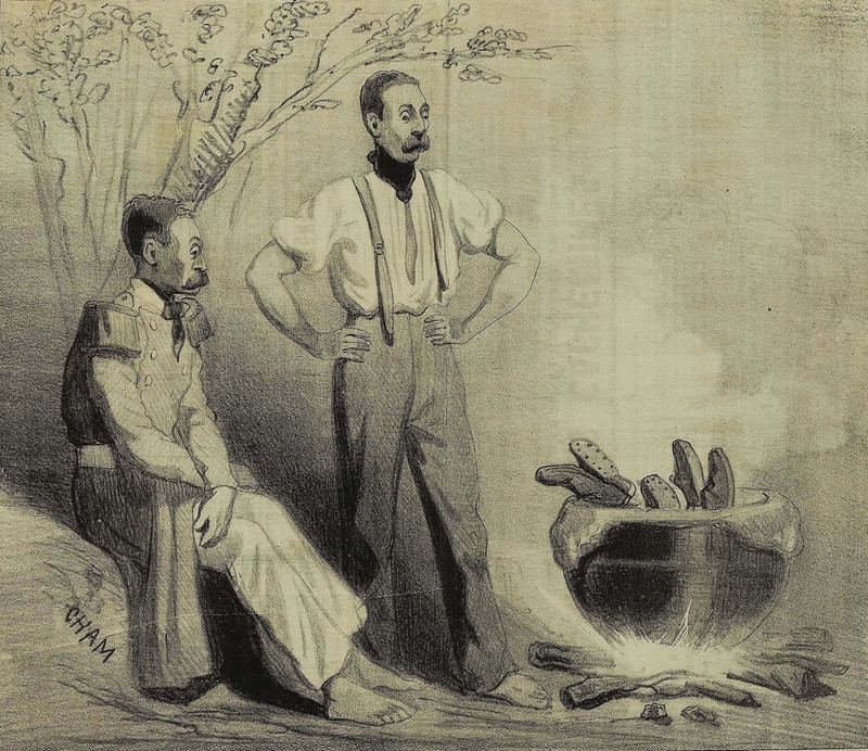 #vintage illustration #cauldron #shoes #shoe soup #eating a shoe #1840s