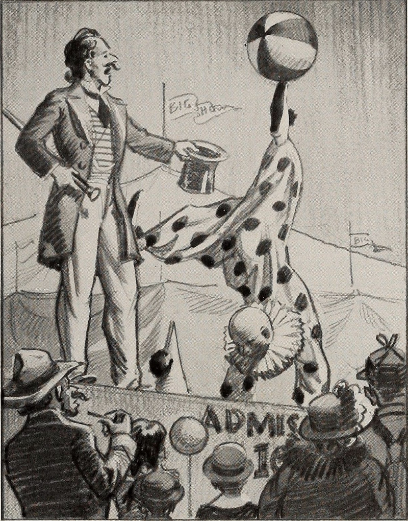 #vintage illustration #clown #vintage yearbook #yearbook #circus #handstand #showman