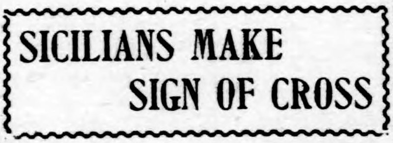 "Sicilians make sign of cross."  From The Duluth Evening Herald, 1908.