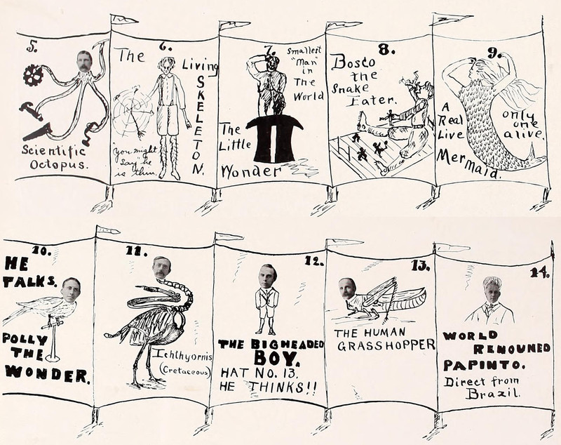 #vintage illustration #vintage yearbook #hybrid #yearbook #circus #human headed #sideshow