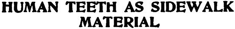 A headline from Popular Mechanics, 1908 -- Human Teeth as Sidewalk Material.