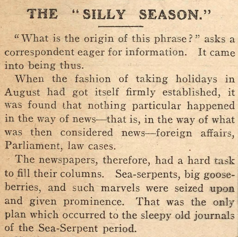 "Now is the silly season when you must keep your weather-eye peeled!"  From The Film Daily, 1939.
