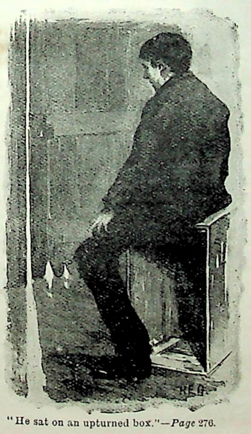 "He sat on an upturned box."  From Home Words for Heart & Hearth by Charles Bullock, 1900.