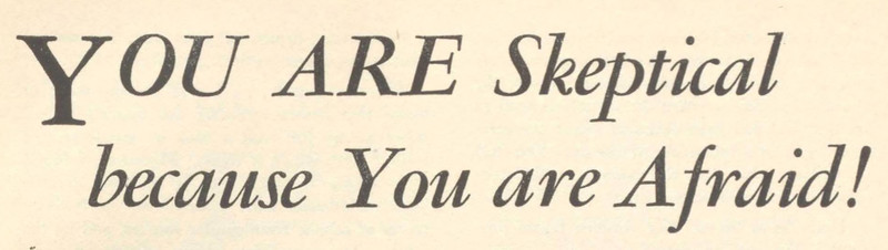 "You are skepticla because you are afraid!"  From The New Liberator Weekly, 1931.