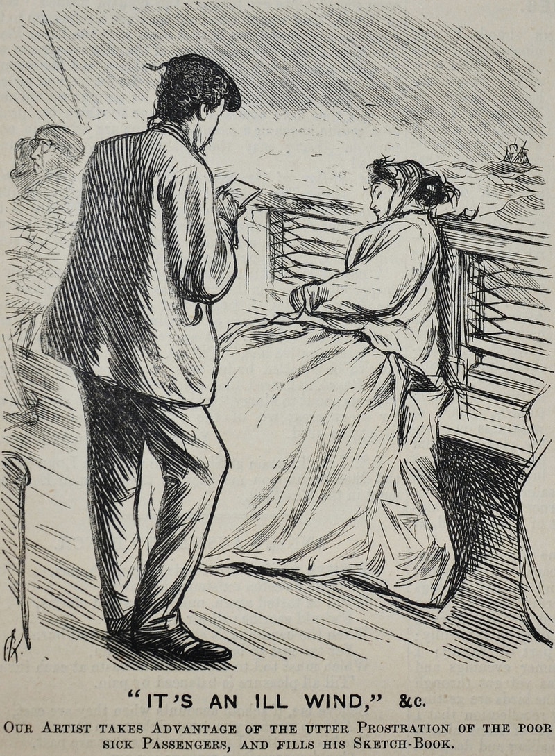Before handy phone cameras, people had to sketch their surreptitious pictures.  From Punch, 1867.