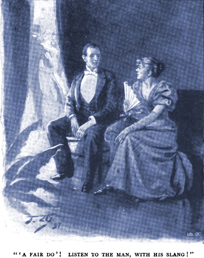 "'A fair do'!  Listen to the man, with his slang!"  From English Illustrated, 1898.