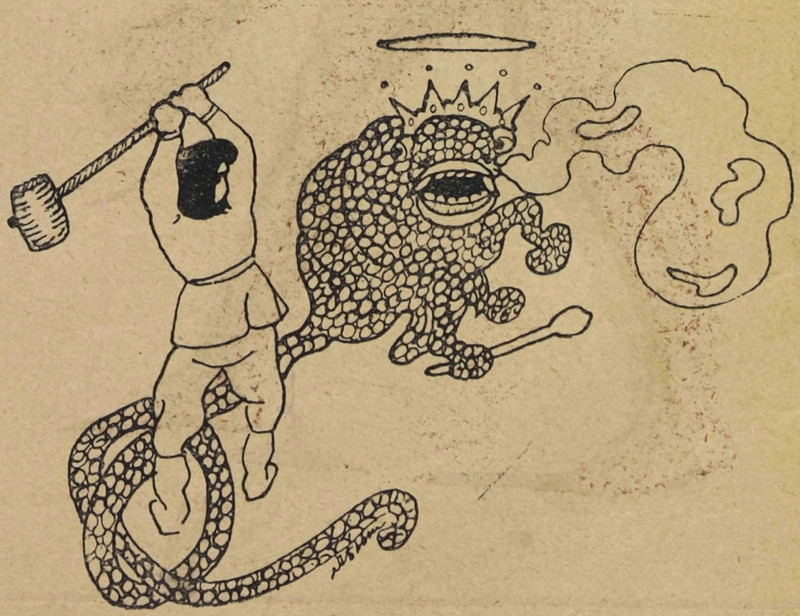 #vintage illustration #monster #dragon #sledgehammer