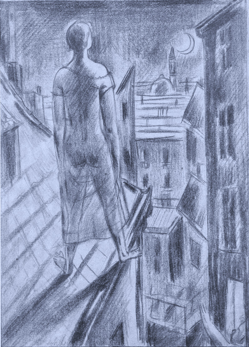 #vintage illustration #rooftop #illustration #sleepwalker #sleep walking