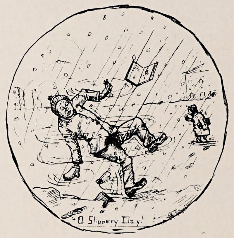 #vintage illustration #falling #snow #winter #vintage yearbook #yearbook #slippery #illustration
