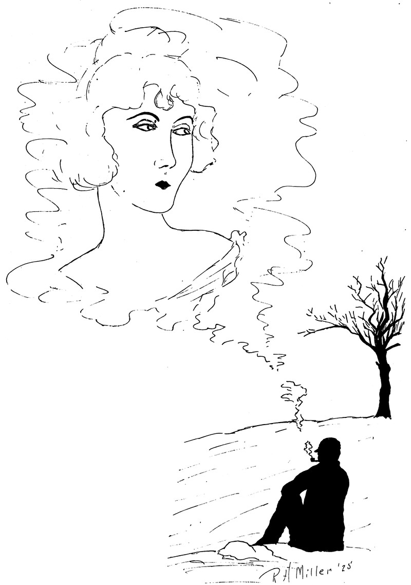 #vintage illustration #vintage yearbook #yearbook #smoke #faces in things #pipe smoker #illustration #smoke goddess