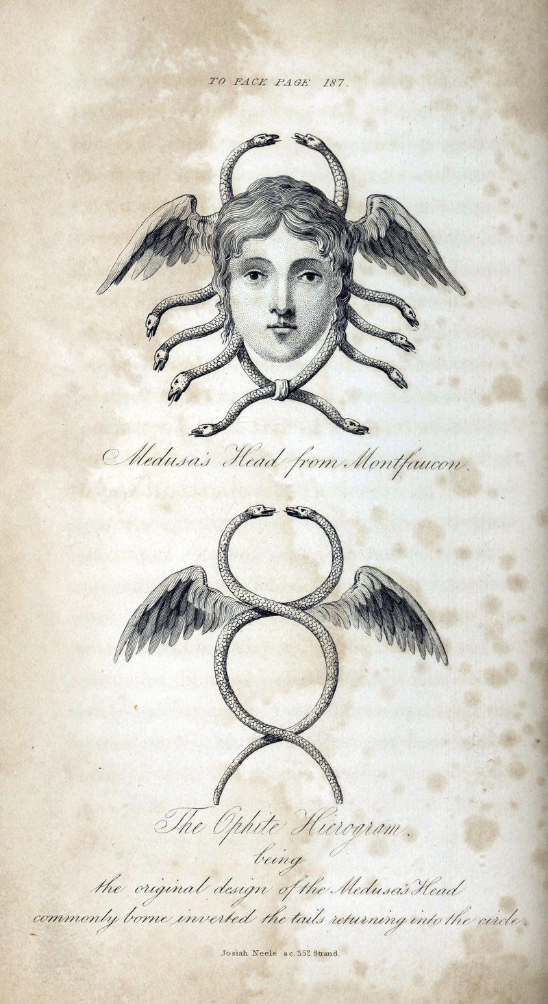 Medusa's head and the Ophite hierogram, from The Worship of the Serpent by John Bathurst Deane, 1830.
