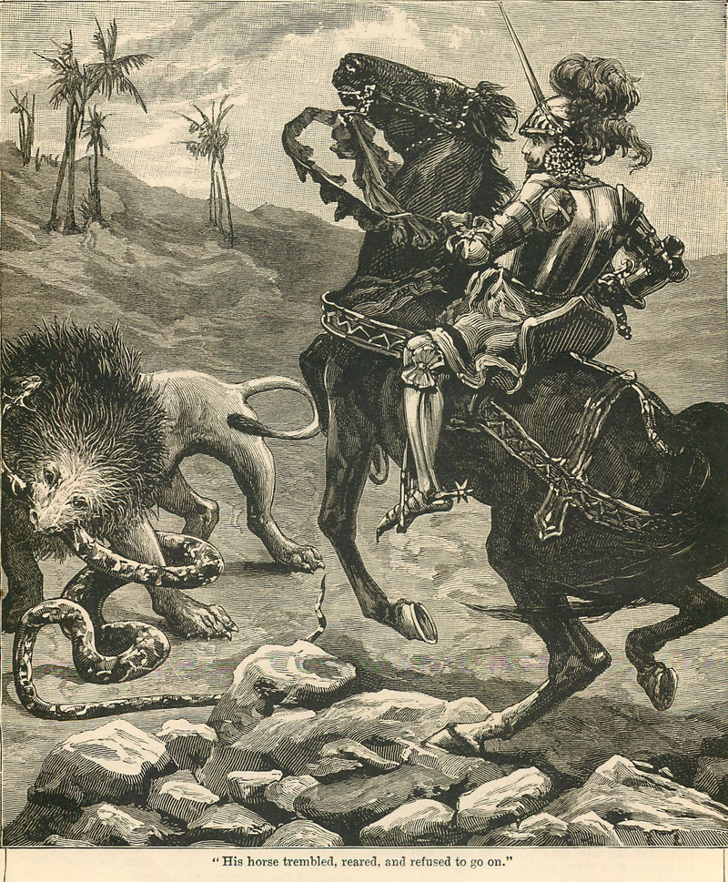 #vintage illustration #horse #knight #lion #animal fight #snale